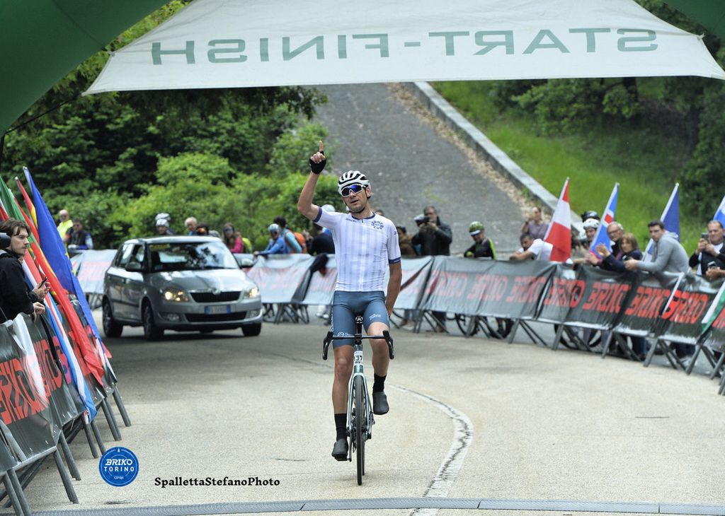 Alla Granfondo BRIKO Torino, Manuele Caddeo ha firmato una vittoria in solitaria dopo una lunga fuga sotto la pioggia. Una prestazione di forza e intelligenza tattica, supportata da un impeccabile lavoro di squadra. Matteo Raimondi ha conquistato il terzo gradino del podio, mentre Alexander Worsdale ha chiuso al 9° posto, confermando la solidità del team.