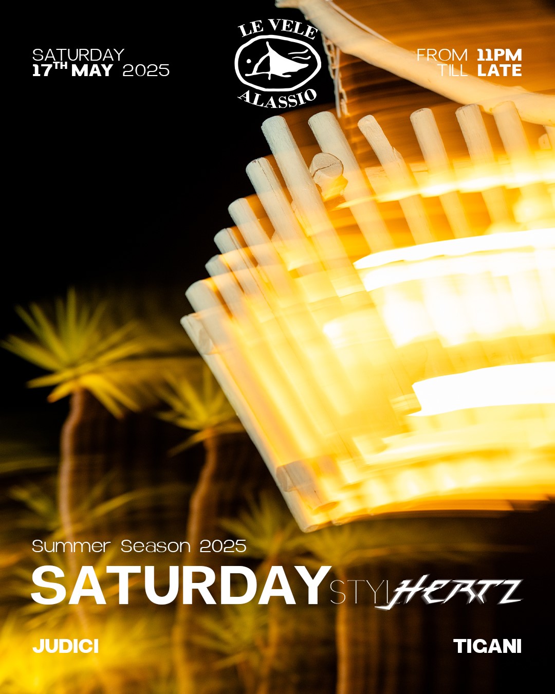 Sabato 17 maggio, sempre dalle ore 23:00, sarà la volta di Stylhertz, il party che detta stile e ritmo in Liguria. In consolle: Judici, DJ dallo sguardo rivolto al futuro, ma sempre fedele alle sue radici, e il nostro resident DJ Tigani, pronto a far vibrare la pista con il suo sound inconfondibile. Una serata elegante e frizzante, perfetta per chi vuole vivere il sabato notte con classe, senza rinunciare all'energia della pista.