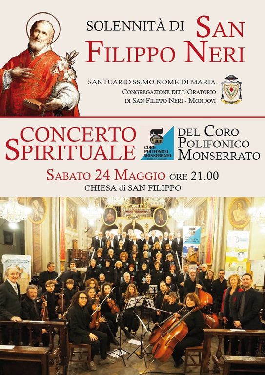 Sabato 24 maggio, nella splendida cornice del Santuario Santissimo Nome di Maria, a Mondovì Breo il Coro Polifonico Monserrato eseguirà un concerto spirituale in occasione della solennità, curata dalla Congregazione dell’Oratorio di San Filippo Neri.