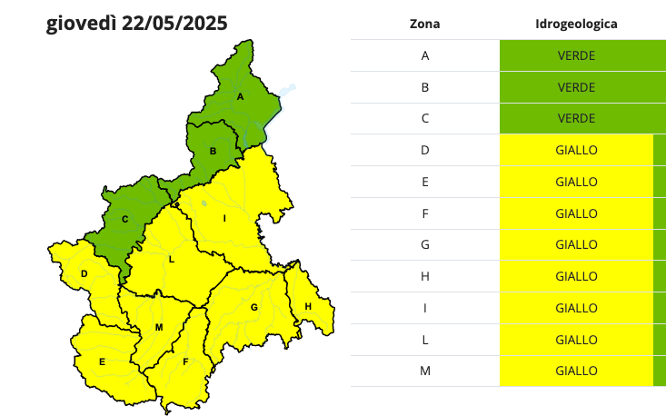 ALLERTA GIALLA per rischio idrogeologico, domani, sulla provincia di Cuneo. L'ha diramata Arpa Piemonte nel consueto bollettino quotidiano.