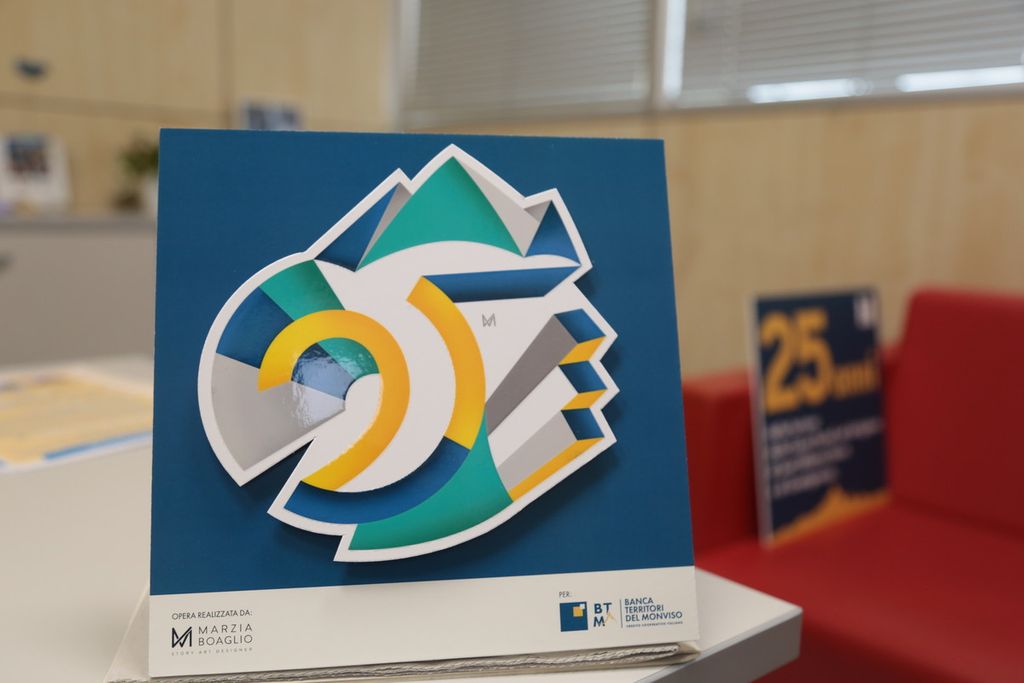 In occasione dei 25+3 anni di BTM, Marzia Boaglio, Socia della banca, è stata scelta per realizzare un’opera simbolica che racconta, attraverso il linguaggio dell’arte, il cammino compiuto e lo sguardo verso il futuro. Banca Territori del Monviso ha affidato proprio a una sua Socia questo incarico così significativo, riconoscendo nella sua visione creativa un riflesso autentico dei valori cooperativi e del legame con il territorio. L’opera sarà svelata durante la Festa dei Soci e troverà poi posto nella sede direzionale di Carmagnola, come segno duraturo d’identità e appartenenza.