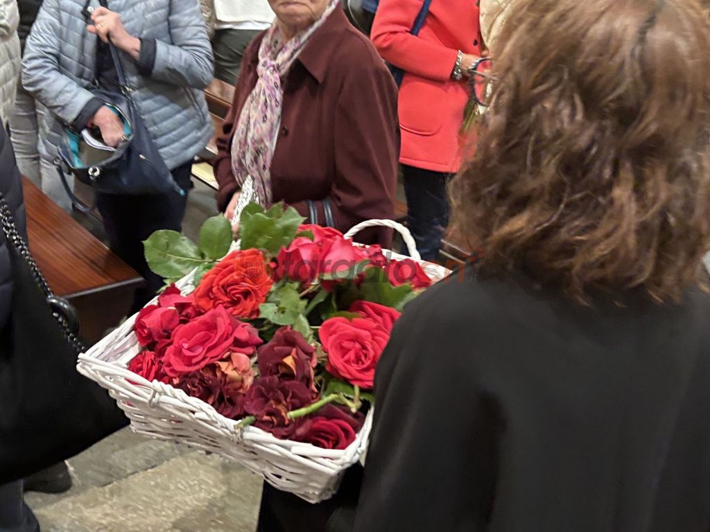 “Oggi siamo qua con le nostre fatiche, le nostre croci ma anche con le nostre rose ed è su questo fiore che vorrei far volgere la vostra attenzione - ha detto padre Marco -. La rosa sboccia in una maniera particolare e definita, nasce dal petalo più vicino al cuore del fiore, poi tutti gli altri petali si distanziano, in maniera precisa. Una sequenza così precisa da essere studiata e teorizzata dal matematico Fibonacci, che la definì la costante di Dio, perché solo Dio ha potuto inventare e creare una simile regola. Chi ama regala sempre una rosa e con la benedizione di oggi chiediamo che questa costante si realizzi anche nella nostra vita, in modo che anche dal nostro cuore si realizzano movimenti che consentano alla luce di Dio far apparire i colori più belli della nostra vita".