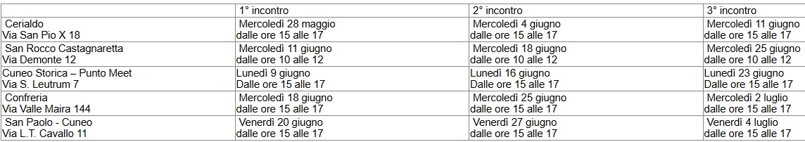 Gli incontri si terranno presso i centri comunali di Cuneo Storica, San Paolo, San Rocco Castagnaretta, Confreria e Cerialdo, con il supporto dei volontari di DigitaLibera.