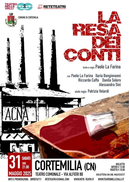 Sabato 31 maggio, alle ore 21, il Teatro Comunale di Cortemilia ospita “La Resa dei Conti”, uno spettacolo che scava nella storia industriale e nelle contraddizioni del nostro tempo.