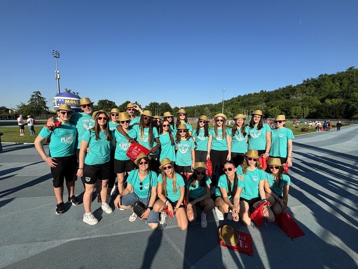 I ragazzi e le ragazze di Twin Towns e Olimpo Alba hanno partecipato numerosi all’evento di venerdì per realizzare la coreografia celebrativa della Vuelta di Spagna.