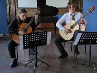 I ragazzi, studenti del Liceo Musicale di Alba, sono allievi della classe di violoncello del prof.Marco Allocco e della classe di chitarra della prof.Nadia Conte.