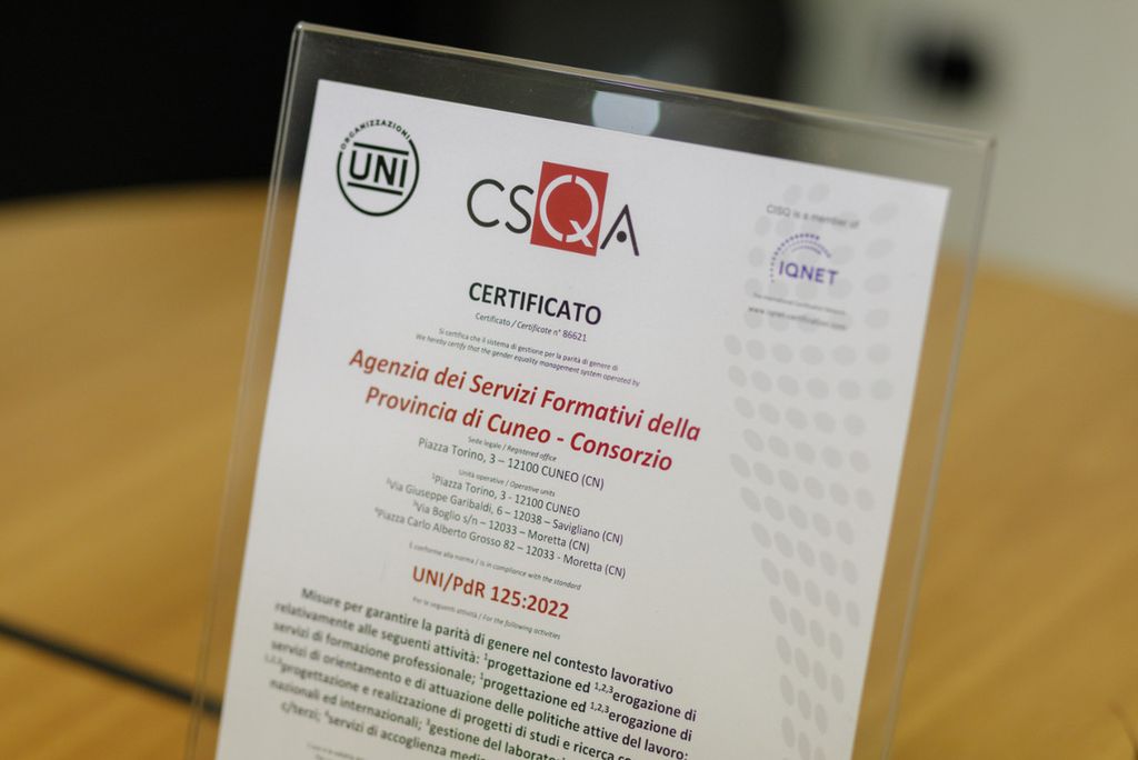 Lo scorso venerdì 30 maggio, AgenForm – Agenzia dei Servizi Formativi della Provincia di Cuneo (Consorzio) – ha ottenuto la certificazione ufficiale UNI PdR 125:2022, "Linee guida sul sistema di gestione per la parità di genere".