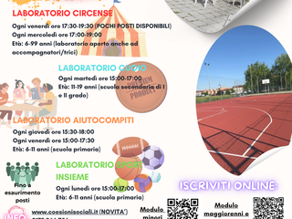 Laboratorio Aiutocompiti – gruppo 1: ogni giovedì dalle 15:30 alle 18:00 – scuola primaria (6-11 anni);