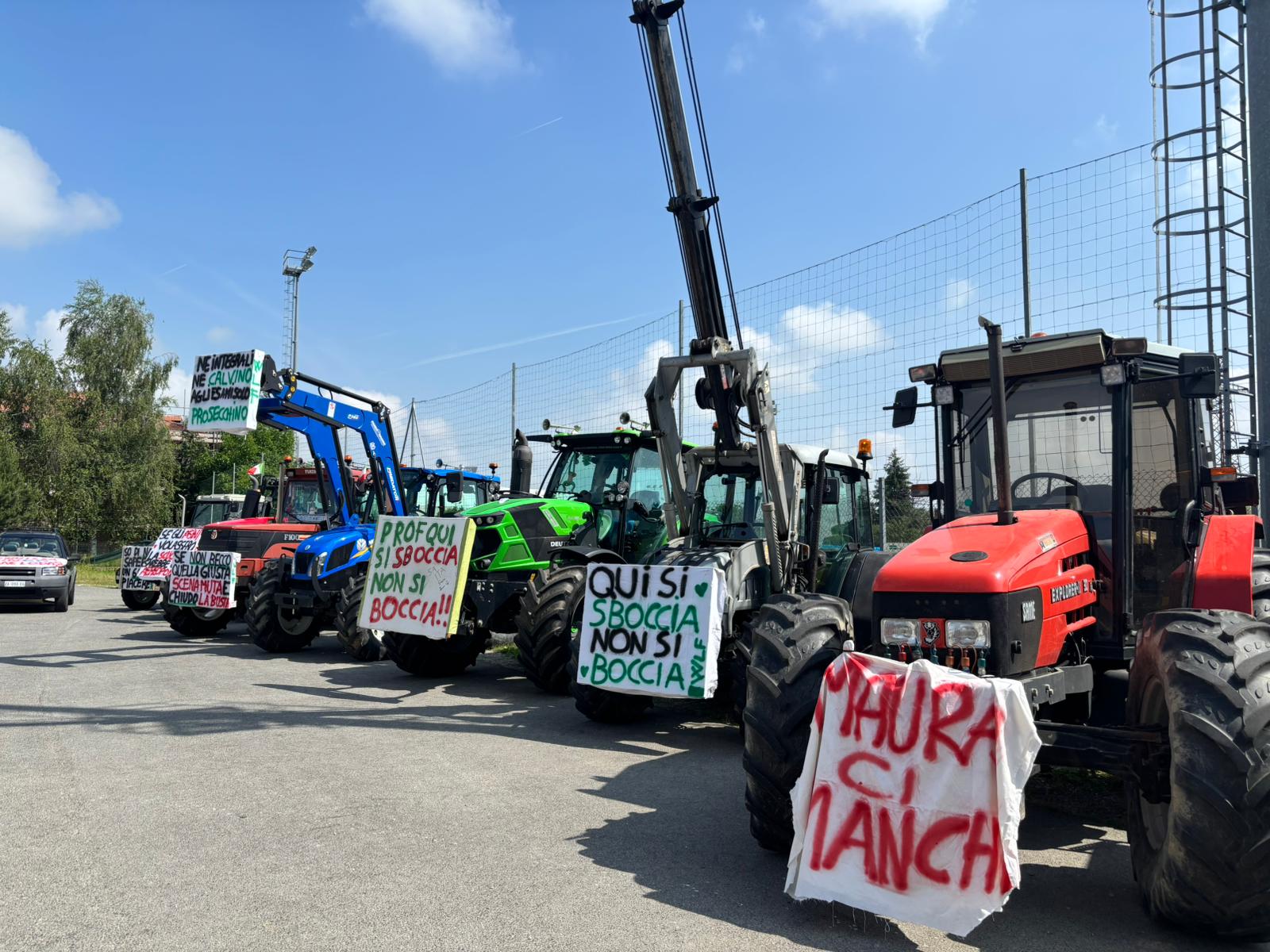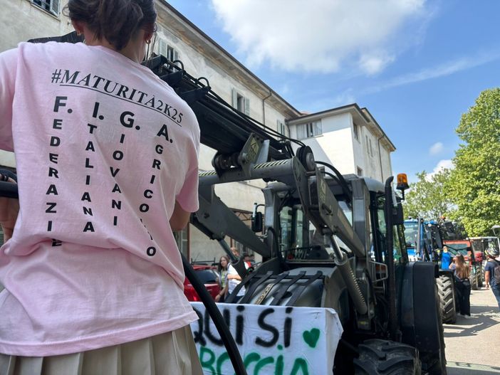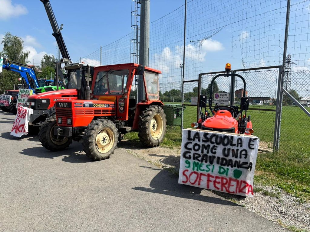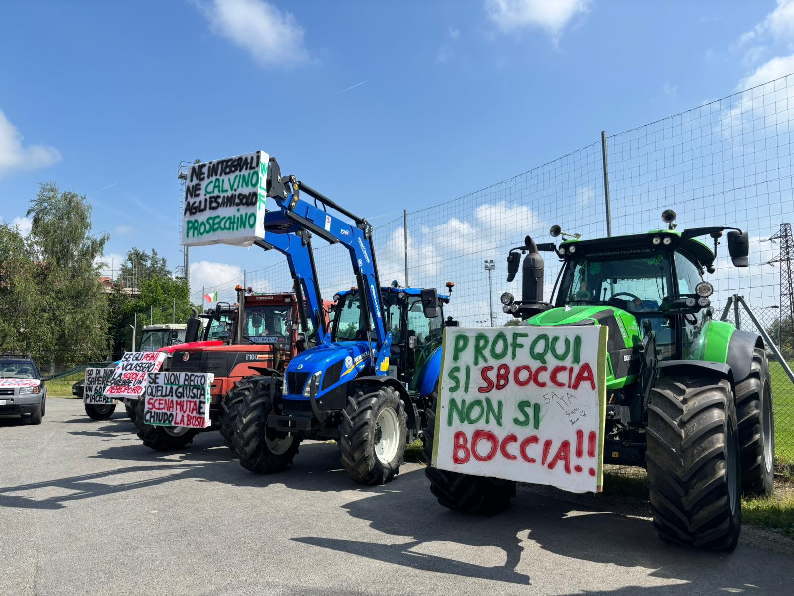 Gli studenti del quinto anno dell’istituto “Giolitti Belisario” indirizzo agraria hanno raggiunto la scuola con i trattori, addobbati per l’occasione con cartelli e striscioni ben auguranti e scongiuri in vista della maturità: dal classico “Prof quando arrivo a 60 mi fermi” a “Né integrali né Calvino agli esami solo prosecchino”.
