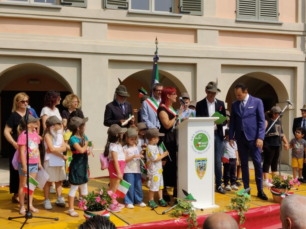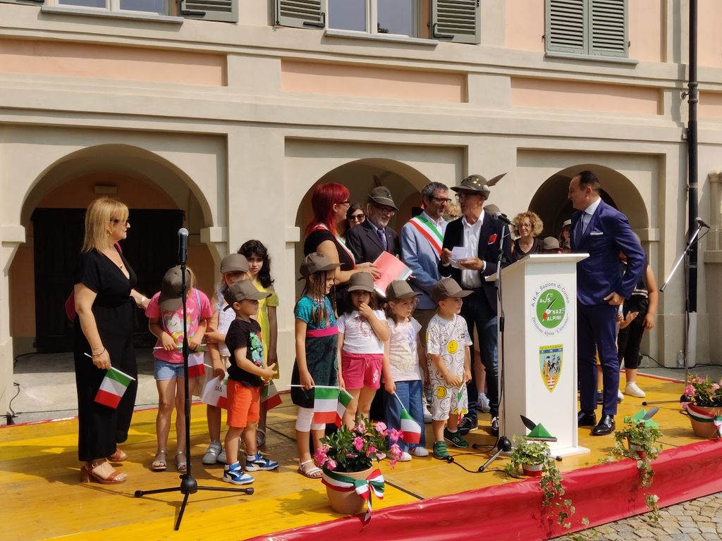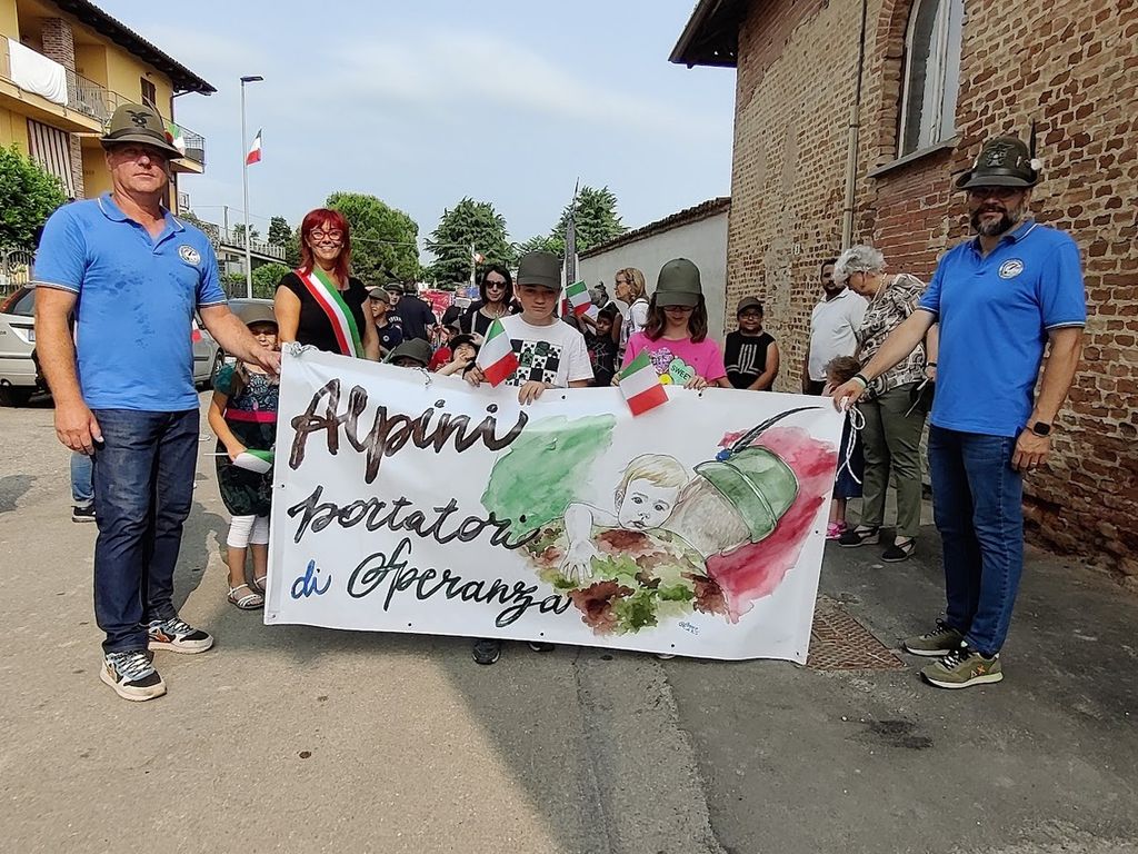 Un numeroso gruppo di bambini della Scuola dell'Infanzia e della Scuola Primaria, accompagnati dalle rispettive insegnanti, ha infatti sfilato insieme agli Alpini, aprendo la strada alle bande musicali di Montà e Govone.