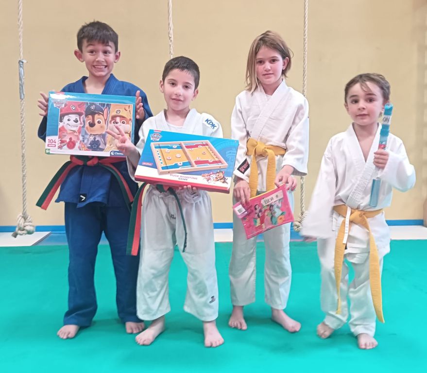 Per concludere l’anno nel modo migliore, gli istruttori hanno organizzato un pomeriggio speciale che ha visto coinvolti circa 30 ragazzi, suddivisi in quattro gruppi di lavoro. Ognuno ha partecipato a rotazione ad attività diverse: esercizi acrobatici e capriole sul materasso, giochi di coppia, tecniche di sumo e momenti di confronto a due. Un mix perfetto tra tecnica e divertimento, pensato per far vivere ai ragazzi un ultimo allenamento coinvolgente, in un clima rilassato ma sempre educativo.