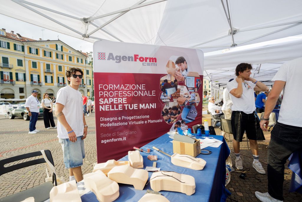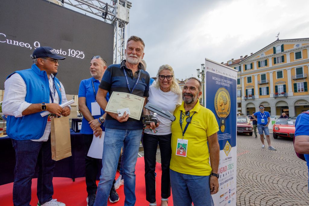 A concludere la giornata, la premiazione delle auto più eleganti: i vincitori sono saliti sul palco per ricevere i trofei che sono stati progettati e realizzati proprio dagli studenti di AgenForm. Ispirati all’Alfa Romeo P2 – la storica vettura con cui Tazio Nuvolari vinse la Cuneo–Colle della Maddalena nel 1930 – i modellini sono diventati pezzi unici, piccole opere d’arte accompagnate da un certificato di autenticità.