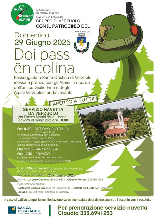 E come dice un famoso adagio: non c’è 3 senza 4 (o forse era 2 senza 3) comunque anche quest’anno al Santuario di Santa Cristina di Verzuolo, il locale gruppo Alpini ripropone DOI PAS ‘N COLINA passeggiata sui sentieri di Verzuolo Outdoor sulla collina Verzuolese.