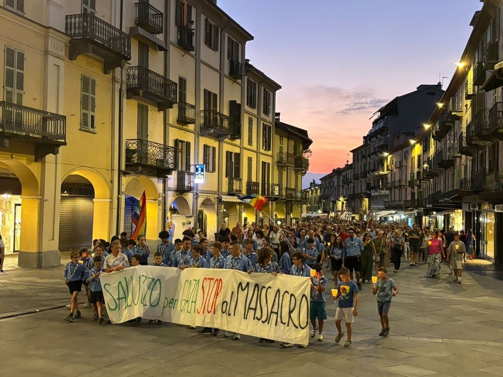 Una marea di persone, con il gruppo scout in testa, associazioni e realtà del territorio e della provincia di Cuneo ha aderito alla manifestazione promossa da ANPI Saluzzo e Valle Po, per chiedere l’immediato cessate il fuoco nella Striscia di Gaza e il ripristino di condizioni umanitarie dignitose per la popolazione civile.