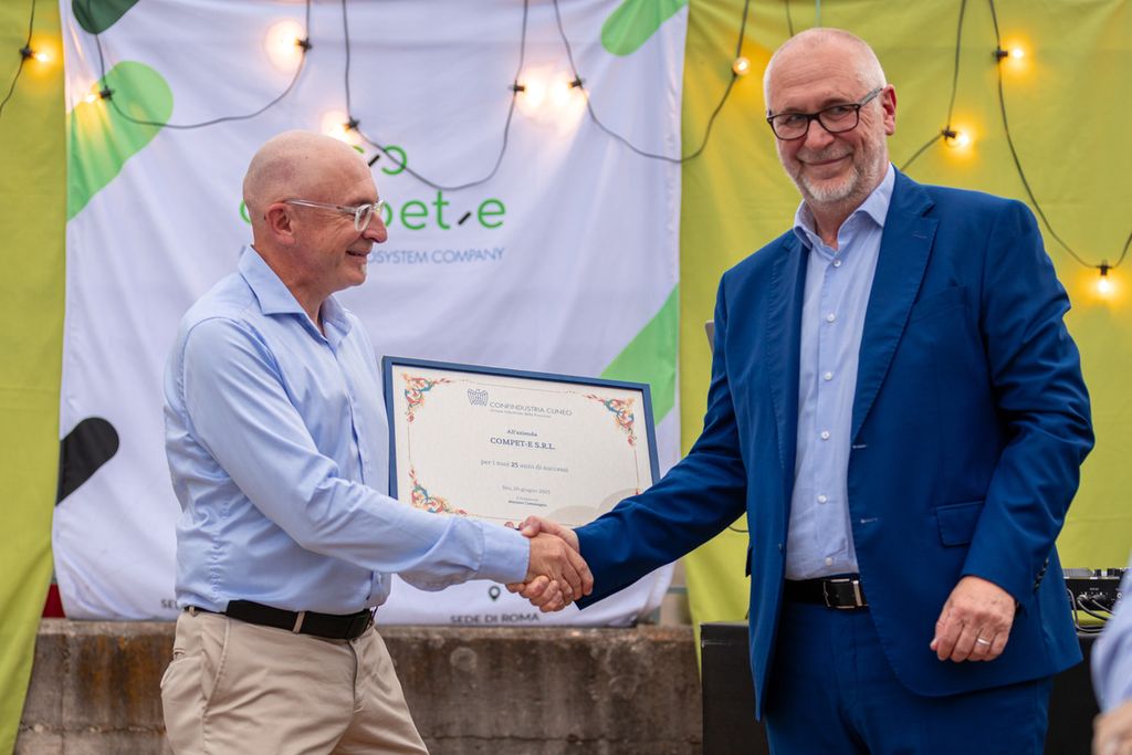 - Mauro Danna, Vicepresidente Confindustria Cuneo e Presidente del CSI – Centro Servizi per l’Industriaha evidenziato l'importanza di celebrare traguardi come i 25 anni, riconoscendo Compet-e come un'azienda consolidata e riconosciuta per la sua professionalità, associata al sistema Confindustria da 9 anni.