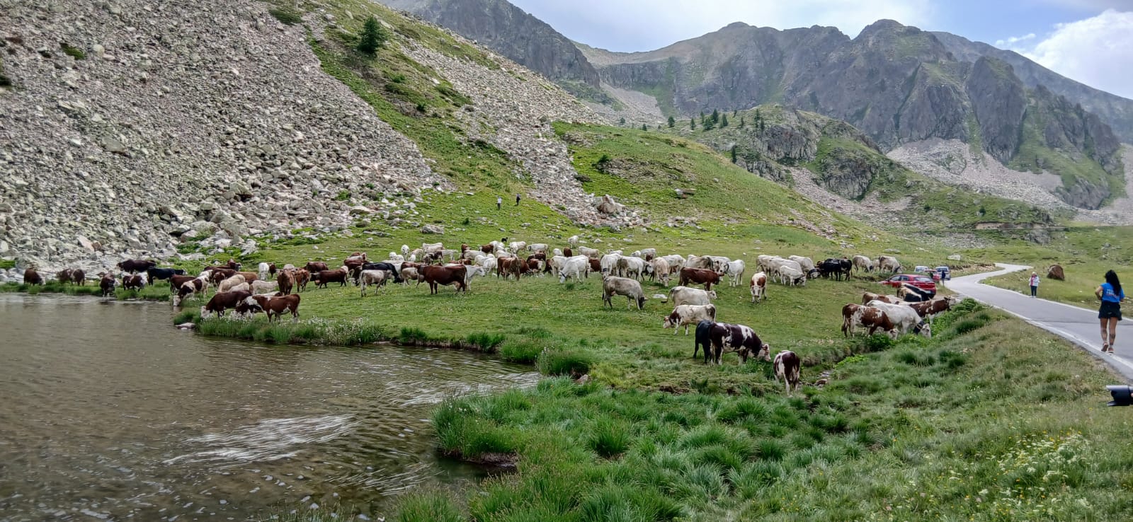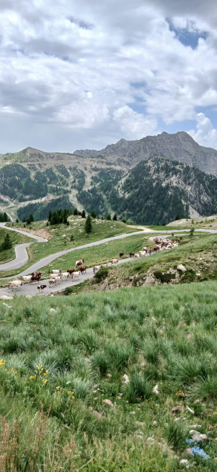Sono in marcia, nella salita, verso gli alpeggi. E' tempo di transumanza in valle Stura di Demonte. I capi di Andrea Colombero e della moglie Barbara, dell'Azienda Agricola “Fiori dei Monti” di Moiola, si stanno spostando per l'estate a Moliére, oggi località francese. Il viaggio, iniziato all'alba di oggi, a piedi e con jeep, vede accompagnare il bestiame al loro passo, nel rispetto della tradizione, ma soprattutto degli stessi animali e al suono dei loro campanacci.
