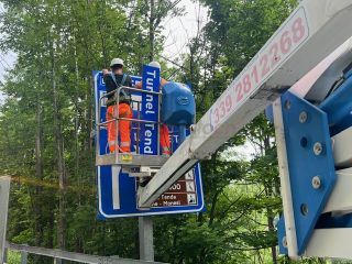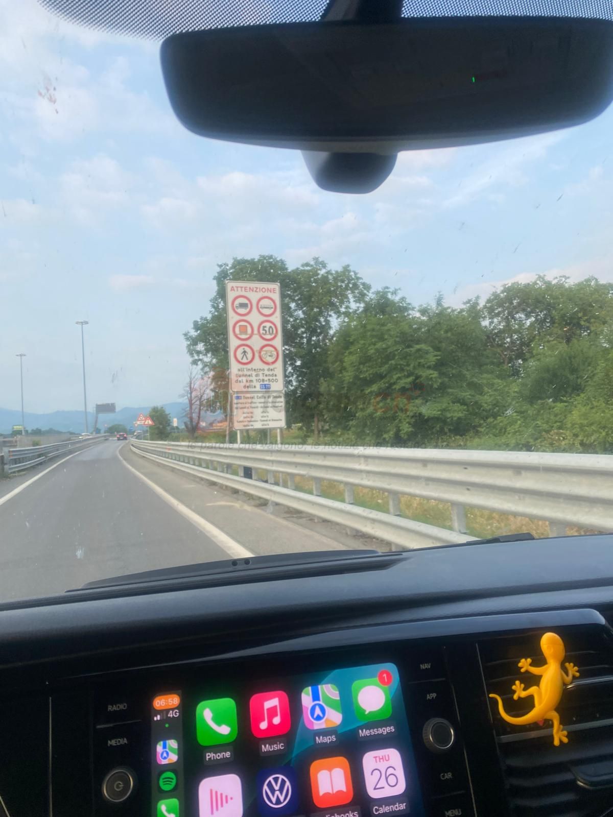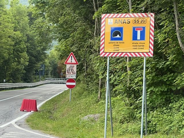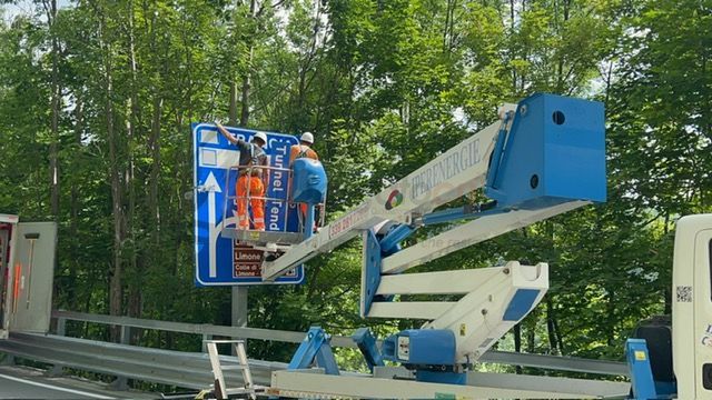 Lungo la strada, i cartelloni presenti non riportavano ancora, stamattina, le indicazioni per la Francia. Ma i lavori erano in corso. E abbiamo visto in diretta la modifica della cartellonistica all'altezza del tornante numero 8, a poco meno di due chilometri dal tunnel.
