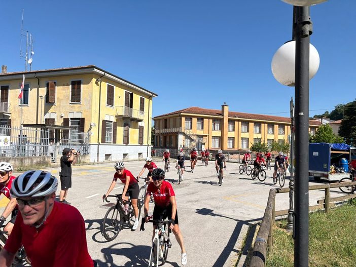 Tra le soste previste in programma c'è stata anche Ceva dove i ciclisti hanno potuto velocemente ristorarsi prima di riprendere il viaggio verso la Liguria.