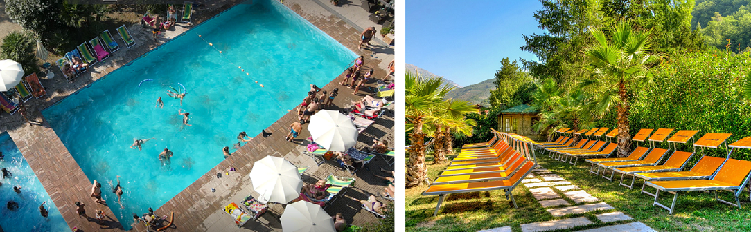 Fiore all’occhiello del campeggio è l’ampia zona piscine, immersa nel verde e attorniata da un solarium con ombrelloni e lettini, a pochi passi dal bar dove gustare un aperitivo o provare una delle pizze cotte nel forno a legna.
