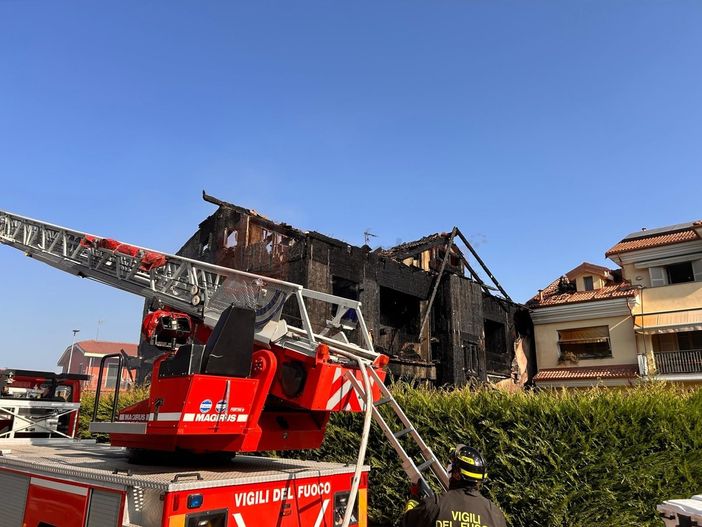 A Cherasco, il giorno dopo, resta lo scheletro di un'abitazione divorata dalle fiamme. Non ci sono persone coinvolte, ma nell'incendio è morto un cane