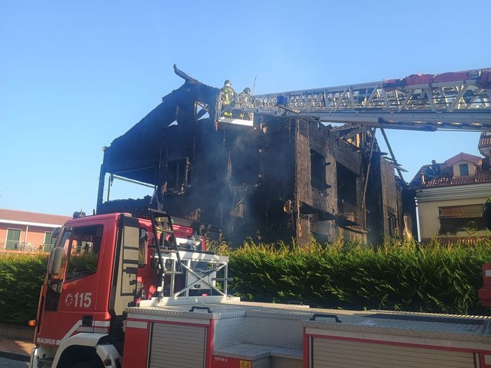 Spento l'incendio che ha distrutto un'abitazione a Cherasco: ancora in corso le operazioni di bonifica e messa in sicurezza [VIDEO]