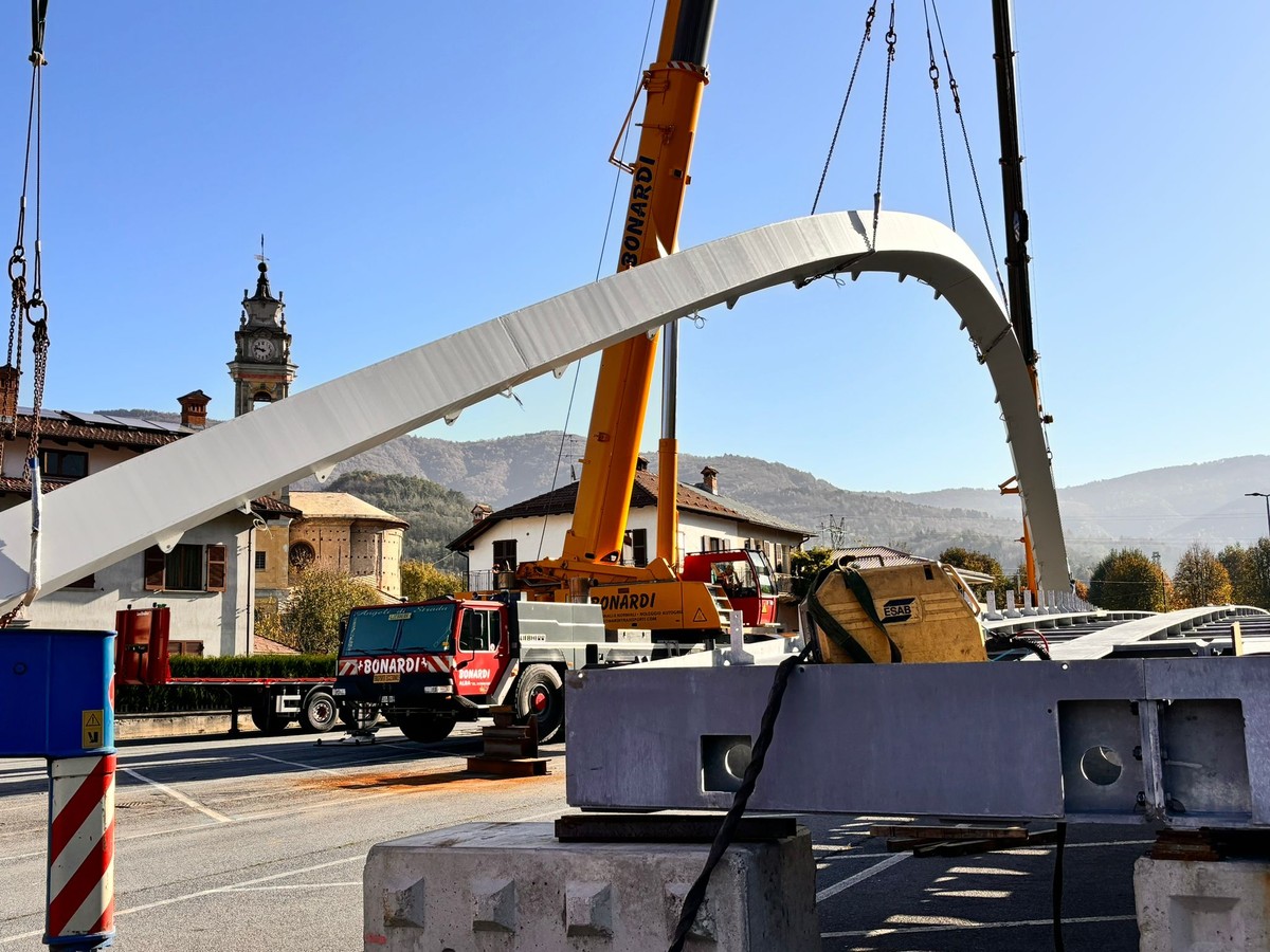A inizio ottobre 2024 la ditta Bertero, che si è occupata della costruzione della struttura, procede con la fase di assemblaggio della passerella con cantiere su piazzale Indemini e poi dell'arco. La struttura ha una lunghezza di circa 50 metri, con arco pendinato di circa 9 metri e mezzo di altezza e un peso complessivo di 150 tonnellate.