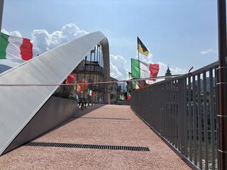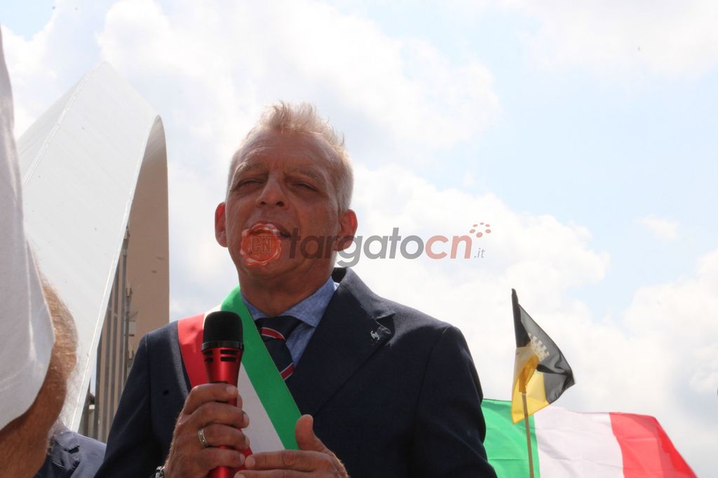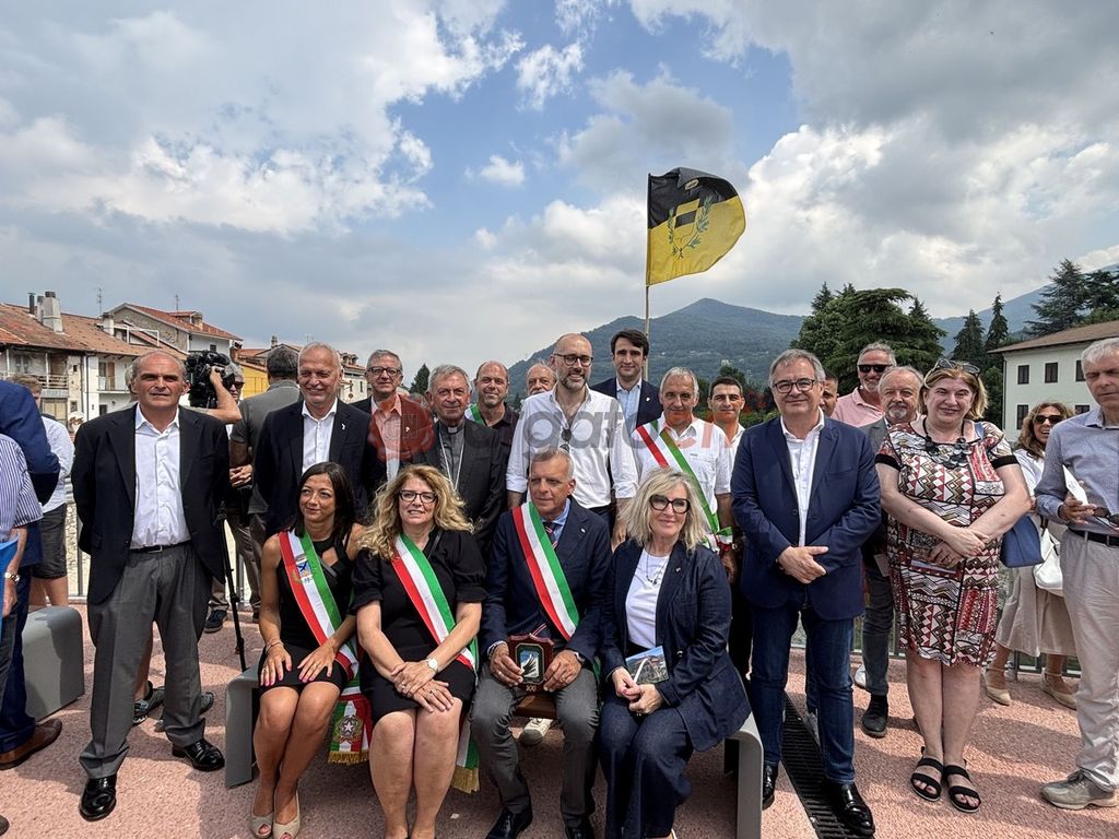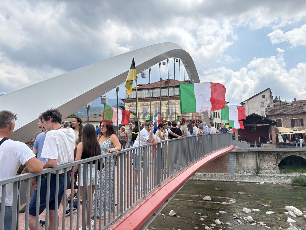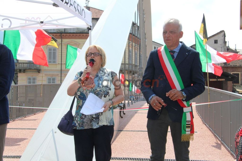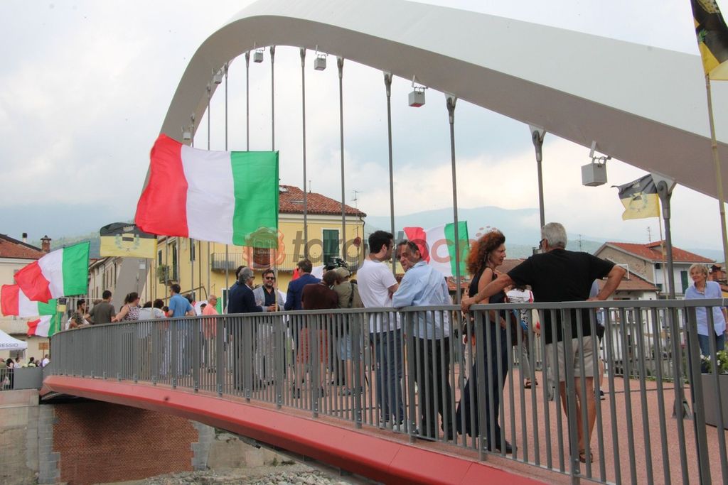ll taglio del nastro, accompagnato dall'Inno, cantato da Barbara Uhl, ha dato il via ufficiale all'apertura della passerella pedonale che, finalmente, ha riunito il borgo Ponte.