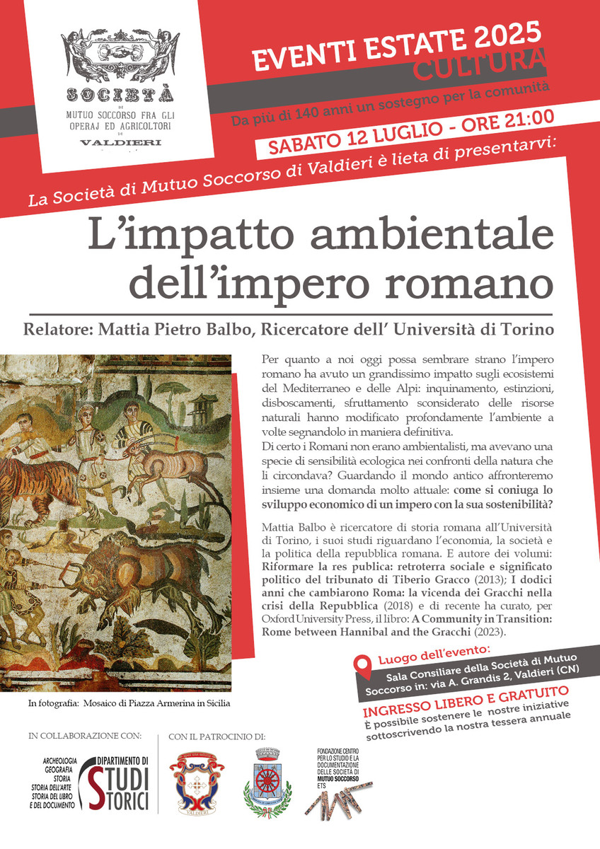 Torna a Valdieri l'atteso appuntamento con la Storia Romana, che da qualche anno vista la grande partecipazione è tappa fissa nel calendario degli eventi della Società di Mutuo Soccorso, avendo avviato una proficua collaborazione con il Dipartimento degli Studi Storici dell'Università di Torino.