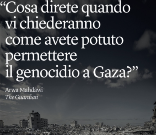 Il tema è di forte impatto e attualità, come suggerisce anche l’immagine scelta per promuovere l’incontro: una citazione della giornalista Arwa Mahdawi tratta da The Guardian, che recita: “Cosa direte quando vi chiederanno come avete potuto permettere il genocidio a Gaza?”