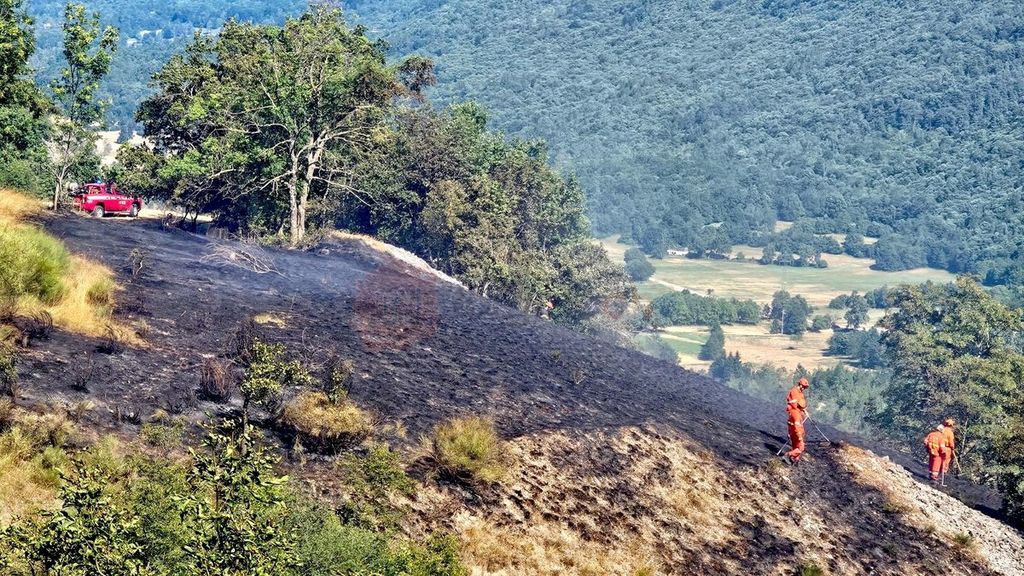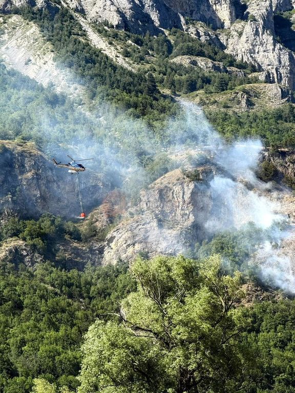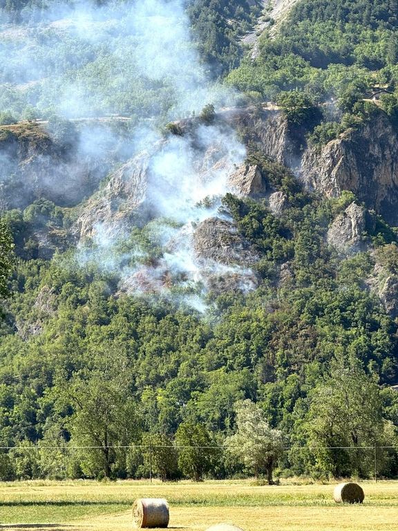 Incendio nei boschi di Vinadio: all'opera vigili del fuoco, volontari Aib e un elicottero della Regione [FOTO E VIDEO]
