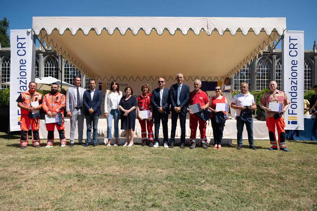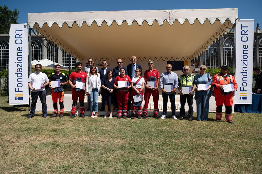 La premiazione dei vincitori del bando Missione Soccorso (edizioni 2023-2024-2025) e Colonna Mobile Regionale è avvenuta alla Giornata del Soccorso 2025 che si è svolta presso la Margaria del Castello di Racconigi, il 10 luglio, alla presenza della presidente della Fondazione Crt Anna Maria Poggi, del segretario generale della Fondazione Crt, Patrizia Polliotto e dell’assessore alla Protezione Civile della Regione Piemonte Marco Gabusi.