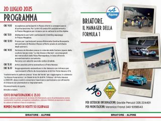 Il libro dedicato a Briatore, oggi team principal Alpine, annuncia già le protagoniste della “Salita in Alta Quota”, evento che sarà parte della domenica di Mondovì e Motori quando, in piazza Maggiore, le auto che portano il marchio Alpine coloreranno il rione, prima di seguire un itinerario tra le valli monregalesi, che condurrà i partecipanti a Prato Nevoso