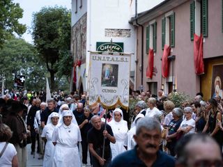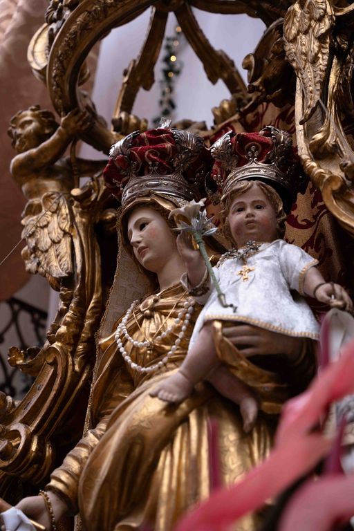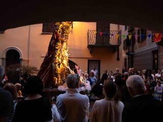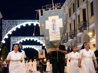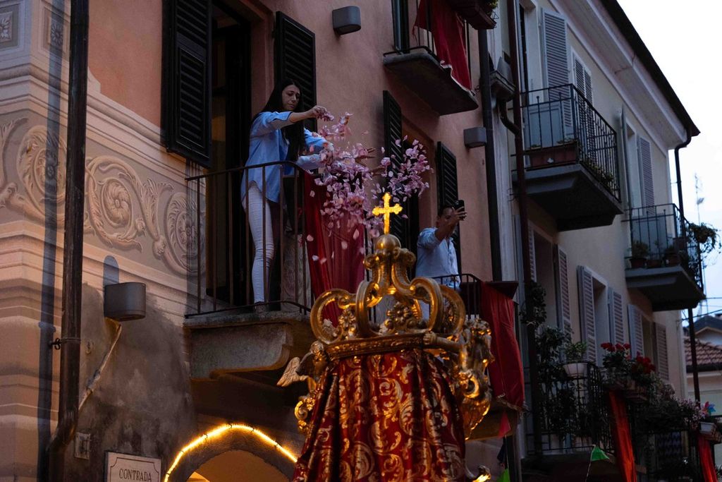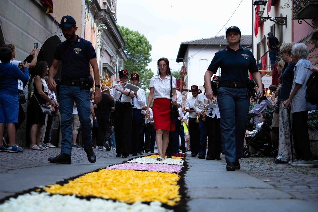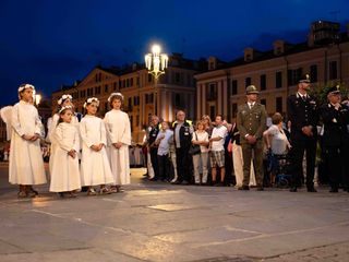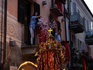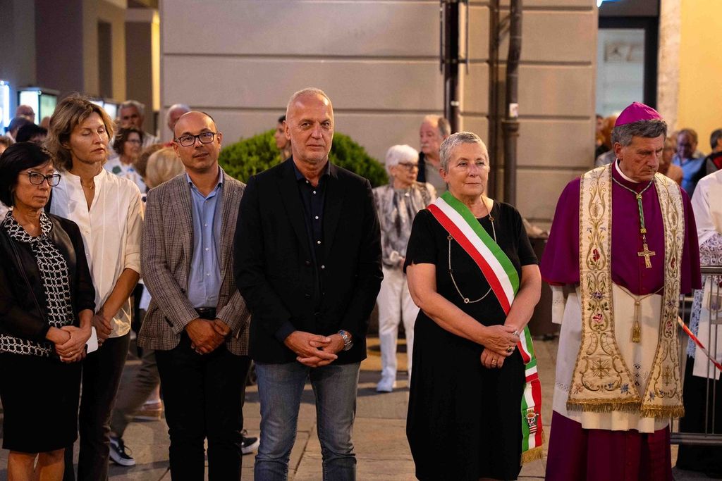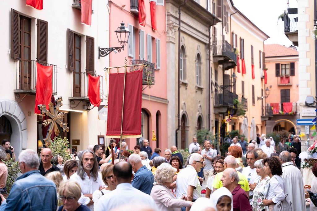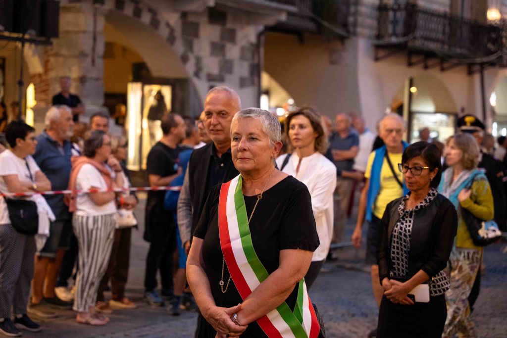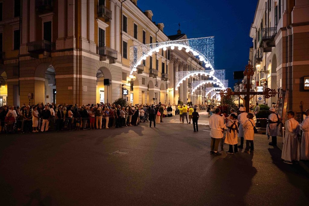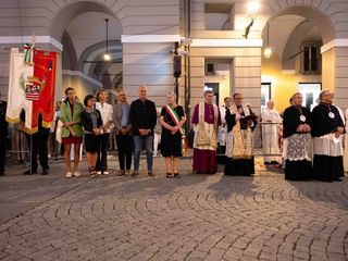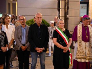 La statua della Madonna ha attraversato via Roma e si è fermata in piazza Galimberti, dove è stato reso omaggio dalle autorità civili e religiose. Al passaggio, dai balconi addobbati con drappi rossi sono stati lanciati petali di rosa sul corteo, simbolo di devozione e partecipazione popolare.