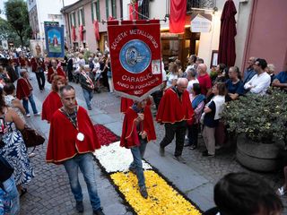 Fin dalla mattina si è svolta l’Infiorata, con la composizione di mosaici floreali lungo Contrada Mondovì e via Roma, dedicati al tema “Pace”, in linea con il messaggio del Giubileo 2025. L’opera è stata realizzata da volontari e cittadini coordinati dal Comitato Festeggiamenti Madonna del Carmine e dalla Confraternita di Santa Maria del Suffragio e San Filippo Neri di Sassello, insieme ai Volontari per l’Arte.