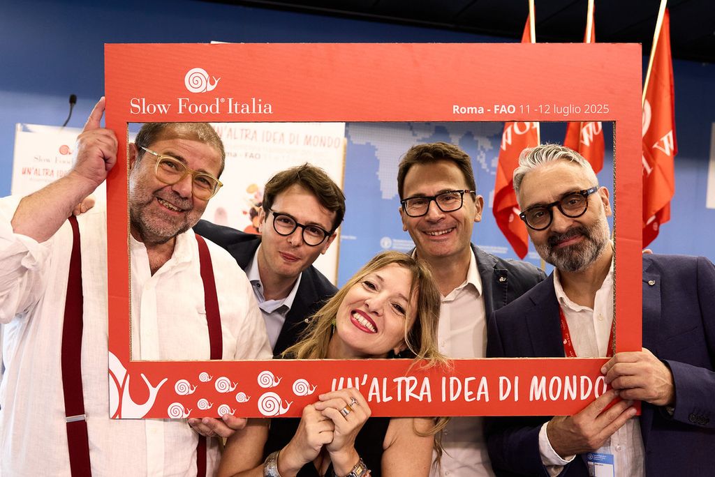 Ai delegati italiani, il fondatore Carlo Petrini ha ricordato qual è la ragion d’essere di Slow Food: «Siamo qui oggi alla FAO e ogni giorno sui territori perché ci piace stare nell’Associazione, perché farne parte è un modo di raggiungere la nostra felicità. Il sottotitolo di Slow Food, da più di 30 anni, è il diritto al piacere, un piacere che non è solo legato al cibo ma anche alla capacità di generare democrazia, partecipazione. Papa Francesco, in uno dei nostri ultimi incontri, mi ha chiesto di mantenere la nostra dimensione di azione dal basso, perché per fare in modo che le cose cambino dobbiamo continuare a operare con gioia e letizia, lavorando con la gente. E questa dimensione di intelligenza affettiva e gioiosa anarchia è quella che vediamo ogni giorno, in ogni angolo del mondo in cui è presente Slow Food. E il nostro impegno non può non guardare a quanto accade nel mondo, in tutti i conflitti e, in particolare, in Congo dove siamo attivi con i giovani che lavorano negli Orti Slow Food, e in Palestina, dove stiamo raccogliendo fondi per costruire una scuola».