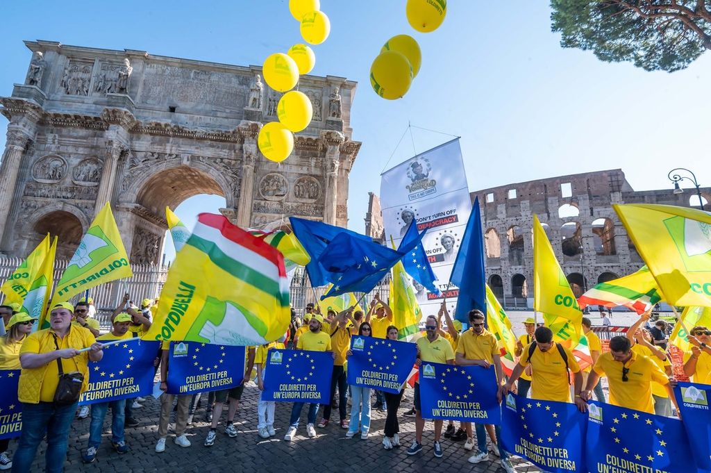Con un messaggio chiaro – “Abbiamo bisogno dell’Europa come il pane, ma questa non è l’Europa che vogliamo” – Coldiretti ha dato vita ad un’azione coordinata a Bruxelles, a pochi passi dalla sede della Commissione europea, e in alcuni luoghi iconici di Roma come Colosseo, Fontana di Trevi e Piazza Navona, e con valore anche politico come il Senato.