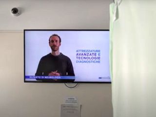 I filmati dei reparti iniziano con la scritta “Siate i benvenuti” e proseguono con la narrazione di alcuni dei principali spazi e processi di funzionamento dell’ospedale di Verduno.