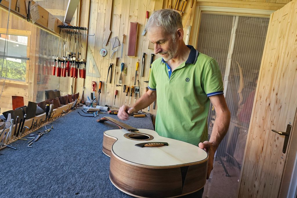 Antonio quando crea uno strumento percorre un viaggio, un percorso che parte dalla scelta del legno, che spesso ha una storia importante, che si snoda tra le sue mani capaci di dare forma al materiale scelto e di arrivare a trasformare pazienza, capacità e creatività in un oggetto che, attraverso il suo suono, con la vibrazione delle corde, porta chi lo ascolta ad assaporare il valore della musica e le emozioni nascoste dentro quella cassa armonica.