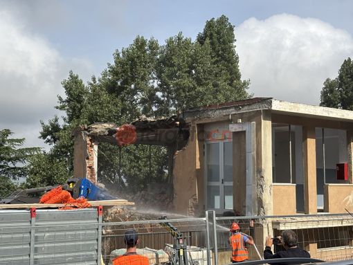 Una "pinza" sta procedendo con la demolizione pezzo per pezzo dell'edificio, una prima fase di intervento che dovrebbe concludersi entro i primi giorni di settembre, in tempo per la ripresa regolare delle lezioni.