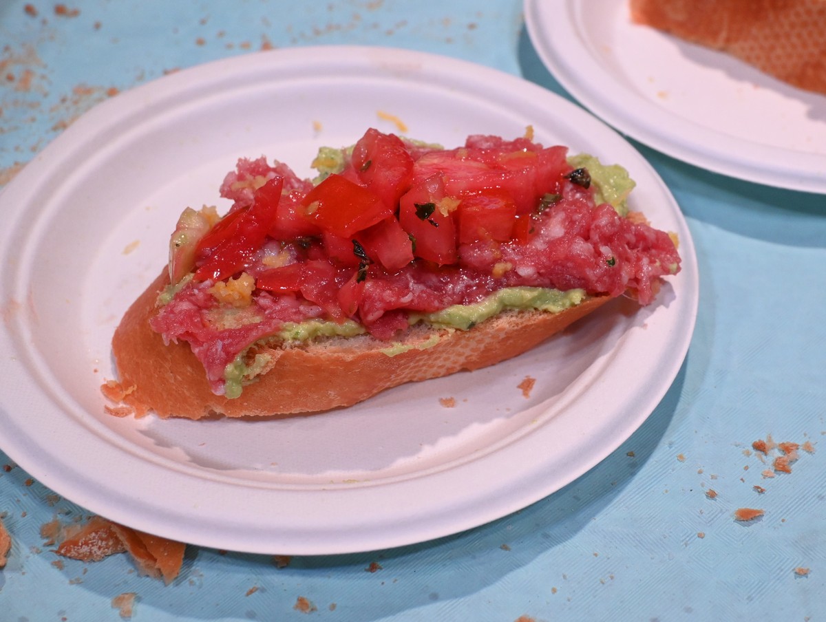 Il loro bis di ricette ha reso omaggio all’incontro-confronto tra le due “salsicce turistiche”: la versione classica della salsiccia alla Cerianasca e, in onore della “regina” braidese, un inedito crostino con pesto di zucchina trombetta e dadolata di pomodoro con cuore ornato di salsiccia di Bra.