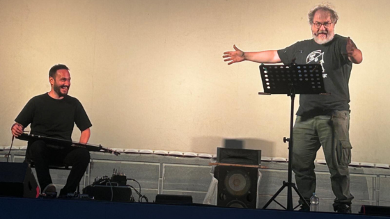 Mercoledì 30 luglio, sul palco dell’Arena Guido Sacerdote del Teatro Sociale “G. Busca” di Alba, Pennacchi ha portato in scena Una piccola Odissea, accompagnato dai musicisti Giorgio Gobbo (autore delle musiche, chitarra e voce), Annamaria Moro (violoncello) e Gianluca Segato (lap steel guitar). Uno spettacolo che fonde mito, racconto orale, autobiografia e memoria collettiva.