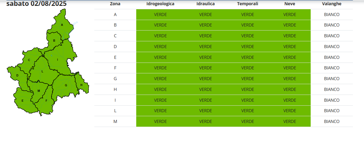 In Piemonte rovesci e temporali sparsi e intermittenti sono previsti ancora oggi pomeriggio, con fenomeni più significativi sul settore meridionale in serata; in esaurimento nella notte. Parziale rinforzo dei venti da nord dalla Valle Ossola alle vicine pianure, dalla serata di oggi al primo mattino di domani.
