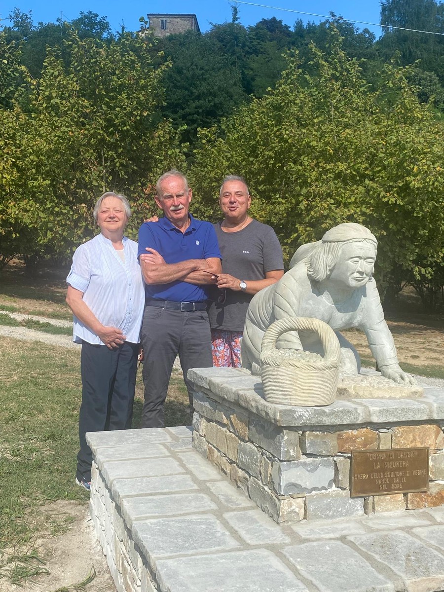 Nel pomeriggio dello scorso sabato 2 agosto, la famiglia Grasso, originaria della frazione Scorrone, ha svelato il volto e le forme di una nuova statua in pietra di Langa intitolata “La Nizurera”.