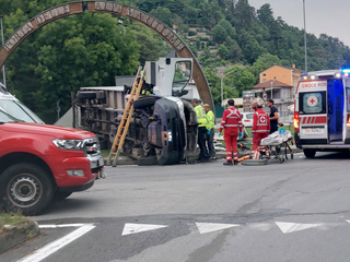 Incidente alla rotonda di Borgo San Dalmazzo: liberato l'autista del furgoncino ribaltato