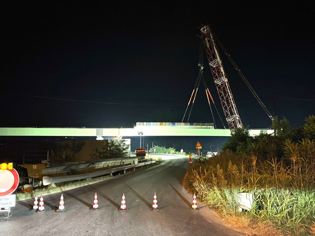 La scorsa notte si è svolta la posa della campata del nuovo viadotto sulla Provinciale 7, un passaggio operativo complesso ma cruciale per il completamento di una delle infrastrutture più attese del territorio. Da giovedì 7 agosto, infatti, sono iniziati i lavori notturni per il varo del sovrappasso che a Verduno scavalca la Provinciale.