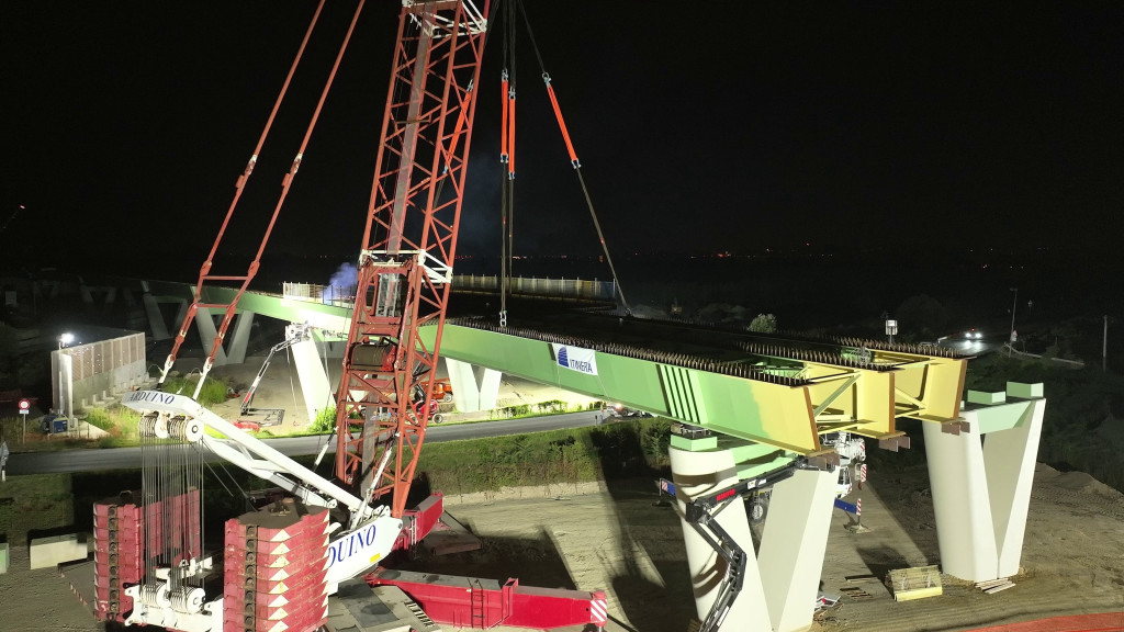 Nella notte tra il 7 e l’8 agosto si è svolto il varo di un concio di impalcato metallico del peso di circa 290 tonnellate, che scavalca la Strada Provinciale 7.
