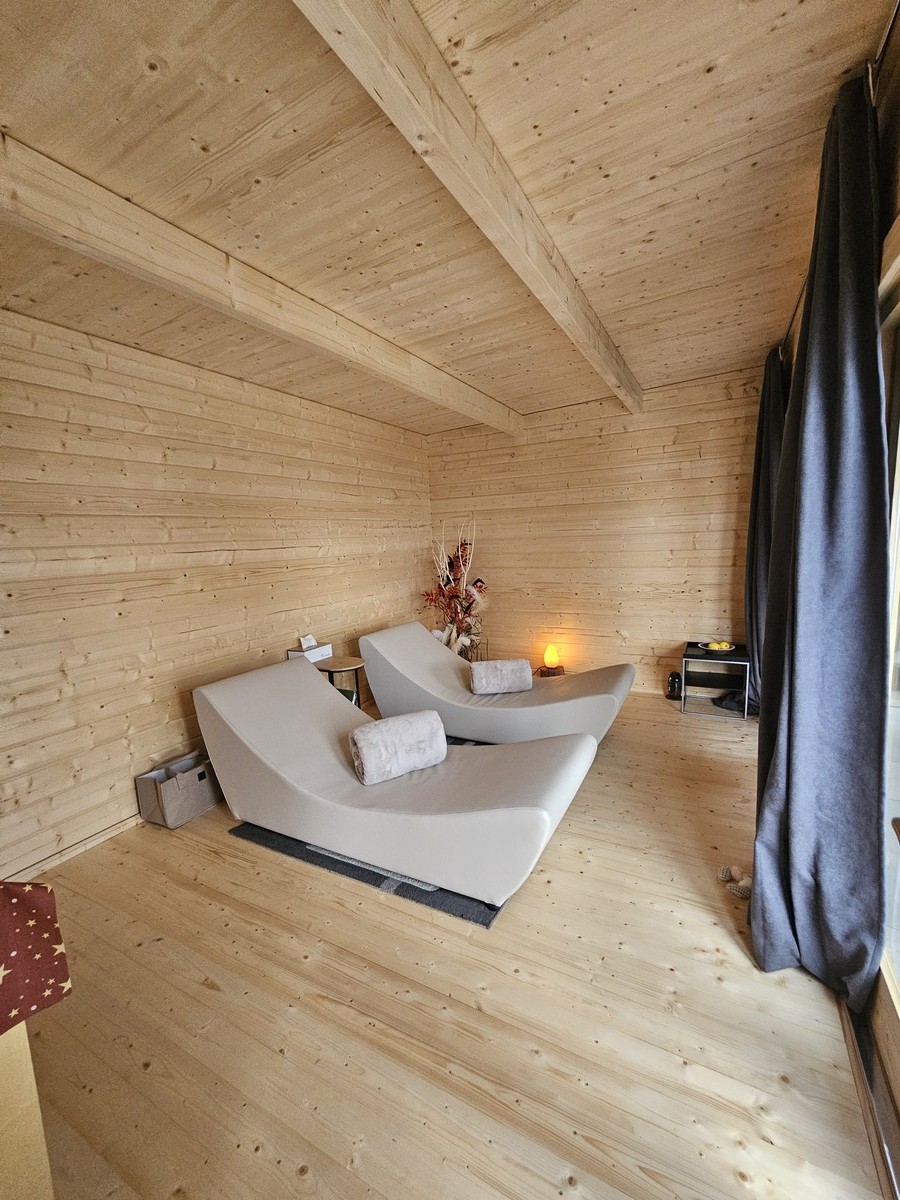 L’ultimo sogno realizzato è la spa: uno chalet panoramico in terrazza, con sauna, bagno turco, doccia emozionale e una mini piscina idromassaggio esterna, calda anche d’inverno. «Volevamo offrire un’esperienza intima, per questo abbiamo pensato a una formula “privacy spa” di tre ore, su prenotazione. Una coccola vera, magari con una tisana calda e frutta fresca».