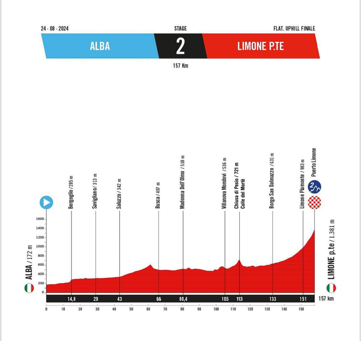 Dopo la frazione inaugurale di sabato 23 agosto da Torino (Reggia di Venaria) a Novara, dedicata alle ruote veloci, si farà subito sul serio in ottica classifica generale con la seconda tappa da Alba a Limone Piemonte, in programma domenica 24.