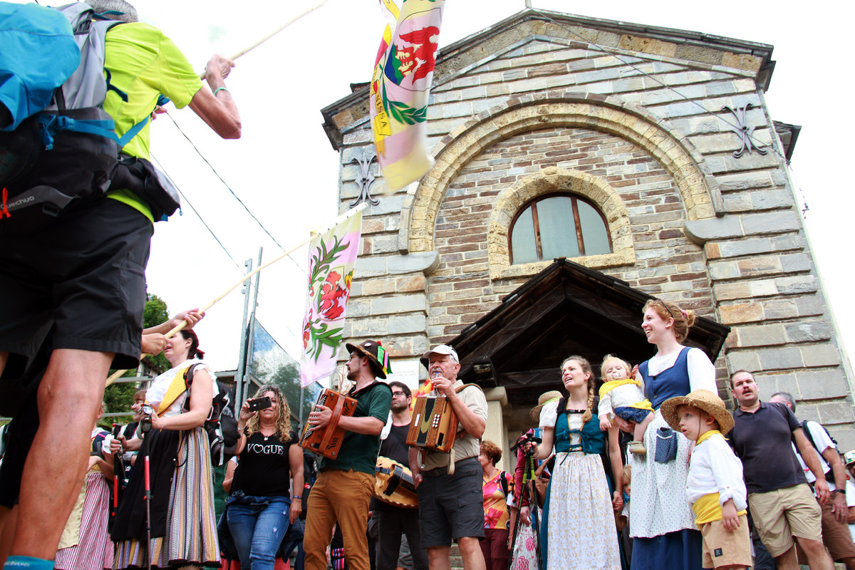 L’arrivo comune delle Traversado a Coumboscuro, venerdì 22 agosto, ha dato il via al Festin della Traversado, un lungo convivio di gastronomia alpina, canti e scambi che si è protratto fino a notte fonda.
