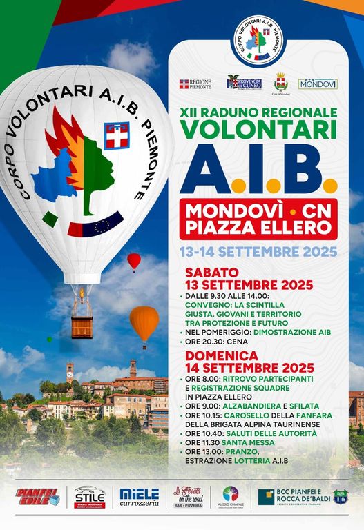 Si terrà nelle giornate di sabato 13 e domenica 14 settembre, a Mondovì, il 12° Raduno Regionale dei Volontari del Corpo A.I.B. del Piemonte.